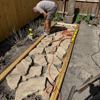 We started by clearing the area, picking up all the stepping stones, and pressure washing them. When we put them back down, we decided to leave space between them to allow for a soft, low ground cover to grow in. I ordered Creeping Thyme seeds from Eden Brothers, fingers crossed they take off. I’ll keep you posted!